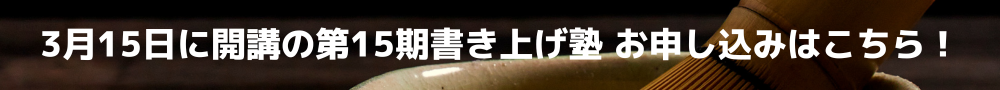 3月15日(日)に開講する「第15期 書き上げ塾」の募集を開始しました。